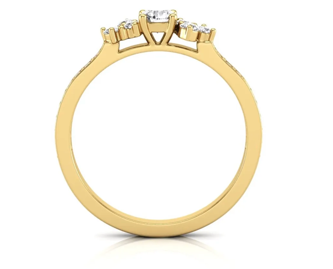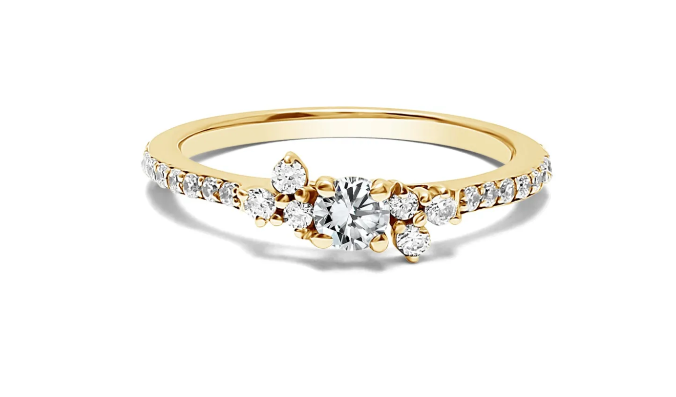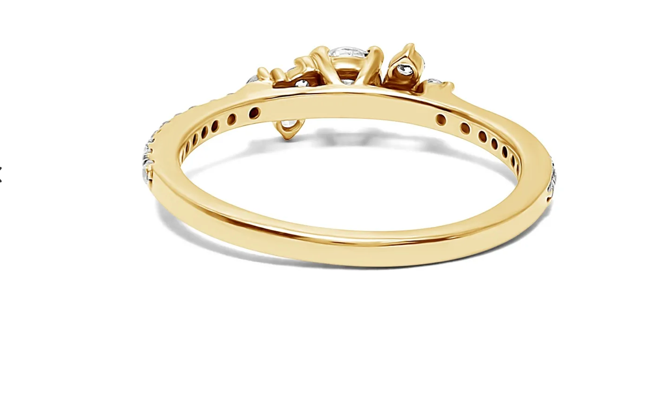 Die Diamanten sind sorgfältig und leicht versetzt platziert, um einen fesselnden Glanz und eine dynamische Brillanz zu erzeugen. Diese geschickte Anordnung fängt das Licht auf eine bezaubernde Weise ein, die die Blicke auf sich zieht und Ihre Liebe mit jedem Schimmer unterstreicht. Auf der Ringschiene sind weitere Diamanten gefasst um diese wundervolle Kreation abzurunden.